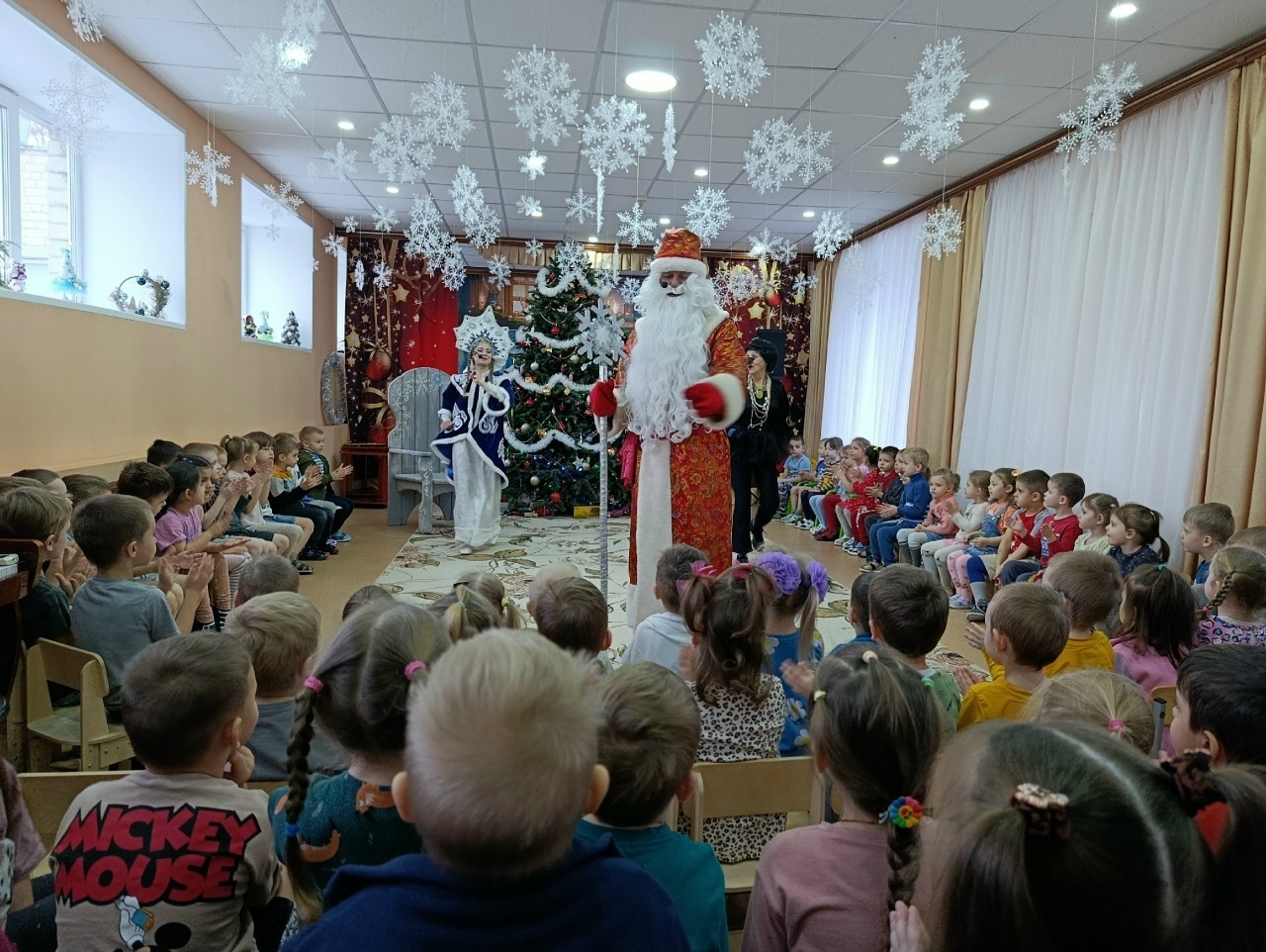 Как же ярко и весело прошёл предновогодний праздник! Ребята водили хороводы с Дедом Морозом, Снегурочкой и обаятельной Воронушкой, зажигательно танцевали, разгадывали загадки, пели весёлые песни, читали стихотворения, и, конечно, загадывали желания главным волшебникам — Деду Морозу и Снегурочке!